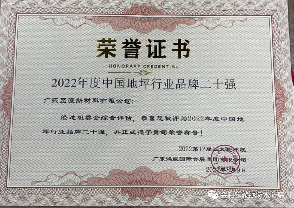 廣東堅派新材料新材料有限公司榮獲2022年度中國地坪行業(yè)二十強(qiáng)榮譽(yù)稱號。