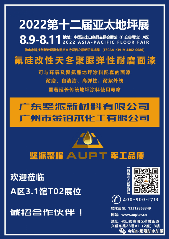 廣東堅派新材料有限公司做為國內(nèi)頗具影響力的生產(chǎn)天冬聚脲防水和地坪涂料的企業(yè)之一,參加了本次亞太地坪展。攜本公司承擔(dān)的佛山市科技攻關(guān)重點項目之研究成果-第四代聚脲-氟硅改性天冬聚脲彈性地坪涂料產(chǎn)品,高調(diào)亮相本次展銷會,憑借過硬的高科技產(chǎn)品和地坪材料技術(shù),美輪美奐的展臺設(shè)計,得到了與會人員的高度贊譽(yù),成為本次展會上亮眼的明星參展企業(yè)。展位上觀眾絡(luò)繹不絕,多家媒體爭相采訪報道,上百家客戶期待合作,展會獲得了超乎預(yù)期的圓滿效果。
