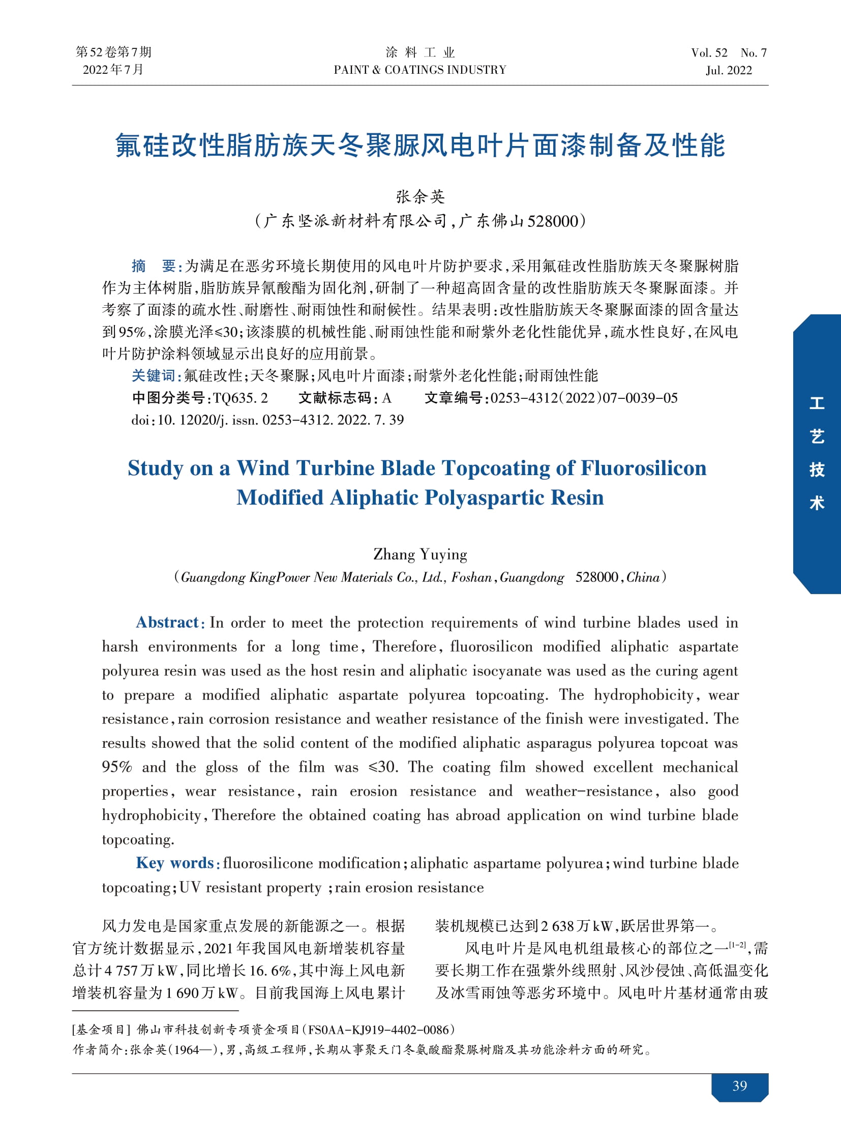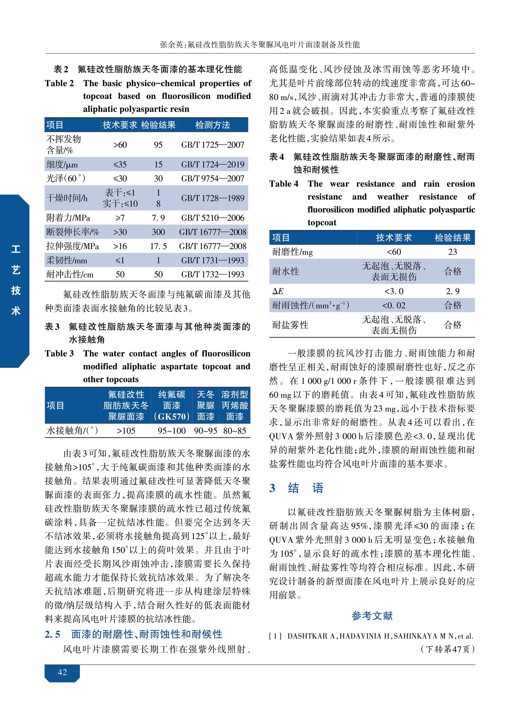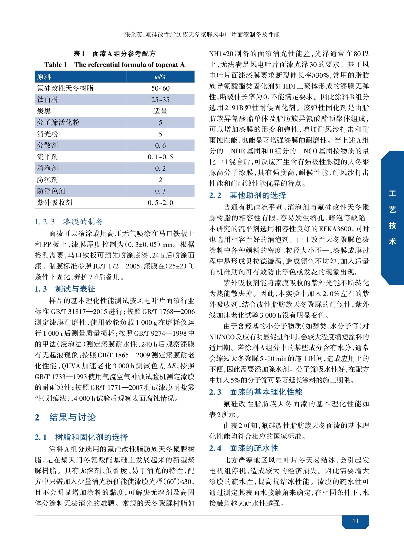 氟硅改性脂肪族天冬聚脲風電葉片面漆制備及性能