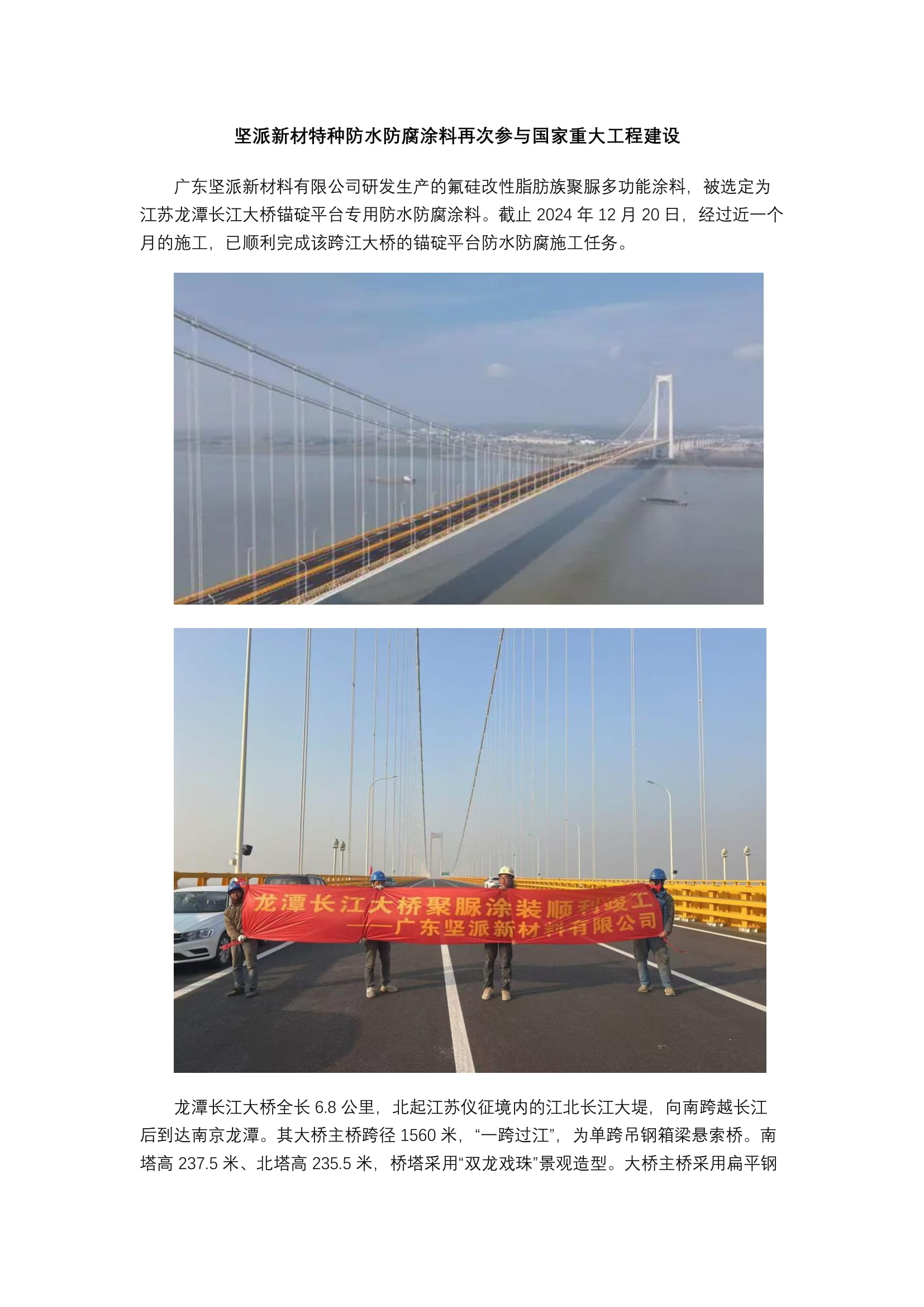 堅派新材特種防水防腐涂料再次參與重大工程建設