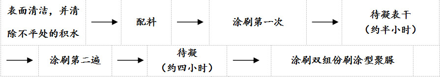 用量:與表面狀態和技術要求有密切關系,一般要求,次涂刷0.2kg/m2,第二次涂刷0.2 kg/m2,總用量不低于0.4kg/m2